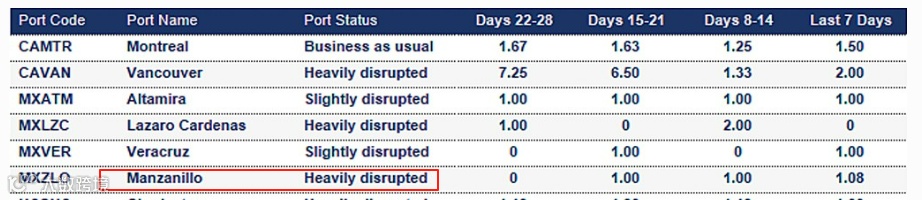 曼萨尼约港的超长延误,导致到港船舶出现塞港现象。E-PORTS CO., LTD. 报告显示,近几周船舶停靠等待时间已延长至 1.8 天。ITPAP 报告揭示出导致延误的三大结构性矛盾: