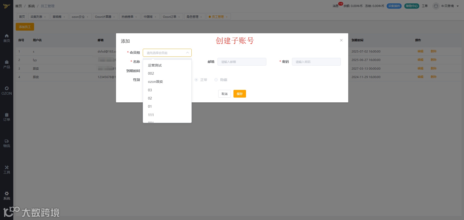 卖家可在主账号下创建多个子账号,并根据角色(如运营、客服、财务)设置不同权限。例如,“运营角色”可分配产品上架、跟卖操作、选品分析等权限;“客服角色”仅开放订单查询与售后处理权限;“财务角色”可查看利润数据但无法修改产品价格。权限设置支持颗粒化配置,确保团队成员各司其职,同时避免核心数据泄露。