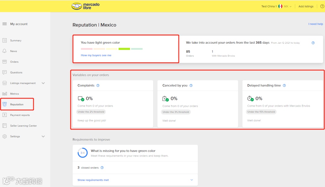 您可以按照My account >Reputation的路径看到各项指标的具体数据,以及下载投诉订单报告。