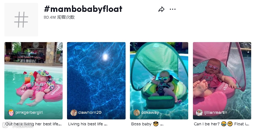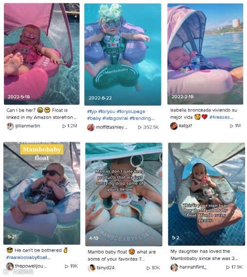 在TikTok上,产品相关标签#Mambobabyfloat热度达到了8040万,许多购买该产品的父母在上面分享自家宝宝的产品使用日常。