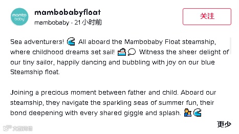 随着家长们在Instagram和TikTok上分享孩子使用Mambobaby花车玩水的视频,Mambobaby迅速成为母婴行业的明星品牌,Mambobaby花车也被誉为泳池带娃神器,被许多家长和婴儿水疗中心评为世界上最好的婴儿花车,在欧美市场更是赢得了良好的口碑。