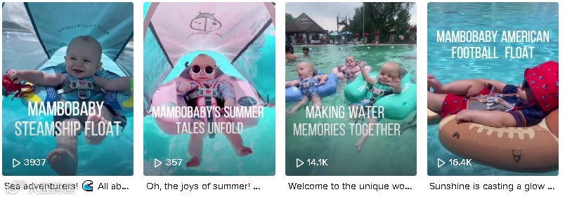 其中,热度最高的当属这条在2021年发布的,播放量高达6210万次的视频,这位婴儿博主@pinkgerbergirl发布了自家宝宝使用Mambobaby产品的内容,情节非常简单,主要是拍摄自家孩子在游泳花车上悠然自得,不哭也不闹,视频一出,不仅这一萌娃俘获了用户的心,还顺带把这款婴儿游泳花车产品给炒火了。