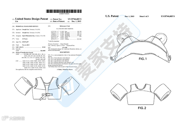 本案是HSP律所代理的PADDLE PALS儿童救生衣专利维权,该公司的儿童救生衣早在在2013年11月4日就布局了美国外观设计专利,并于2015-12-01下证,专利号为D744603。近年来,该救生衣的维权频次虽然不算高,但也是每年维权一次,跨境卖家在选品过程中仍需注意避坑。