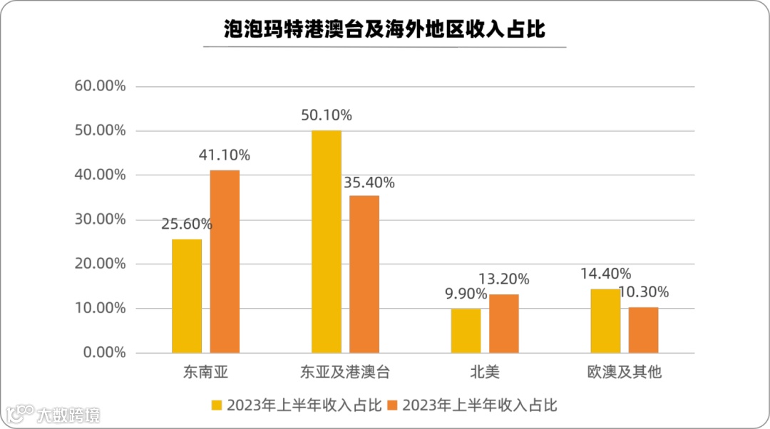 2021年,泡泡玛特的港澳台及海外收入占比还只有4.1%,但有了东南亚地区的大爆发,2024年上半年,这个数字已经达到29.7%,收入超过13亿元。