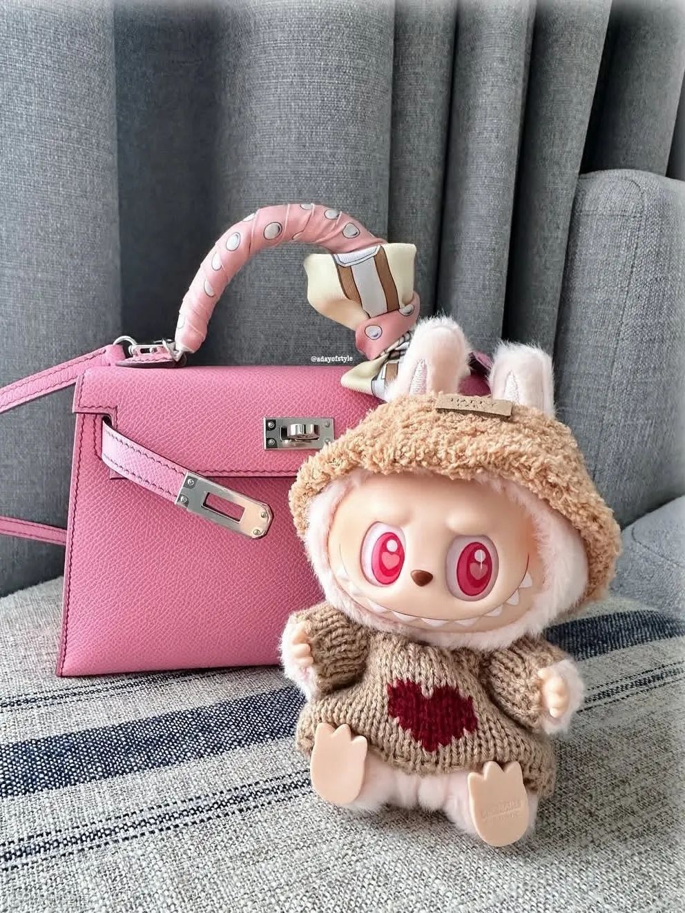 以前奢牌包上挂的是5位数的同品牌包挂,现在3位数的Labubu才是最hot的包搭子,Hermès、LV、DIOR,没有这只露着9颗牙齿的小怪兽搭不了的包。