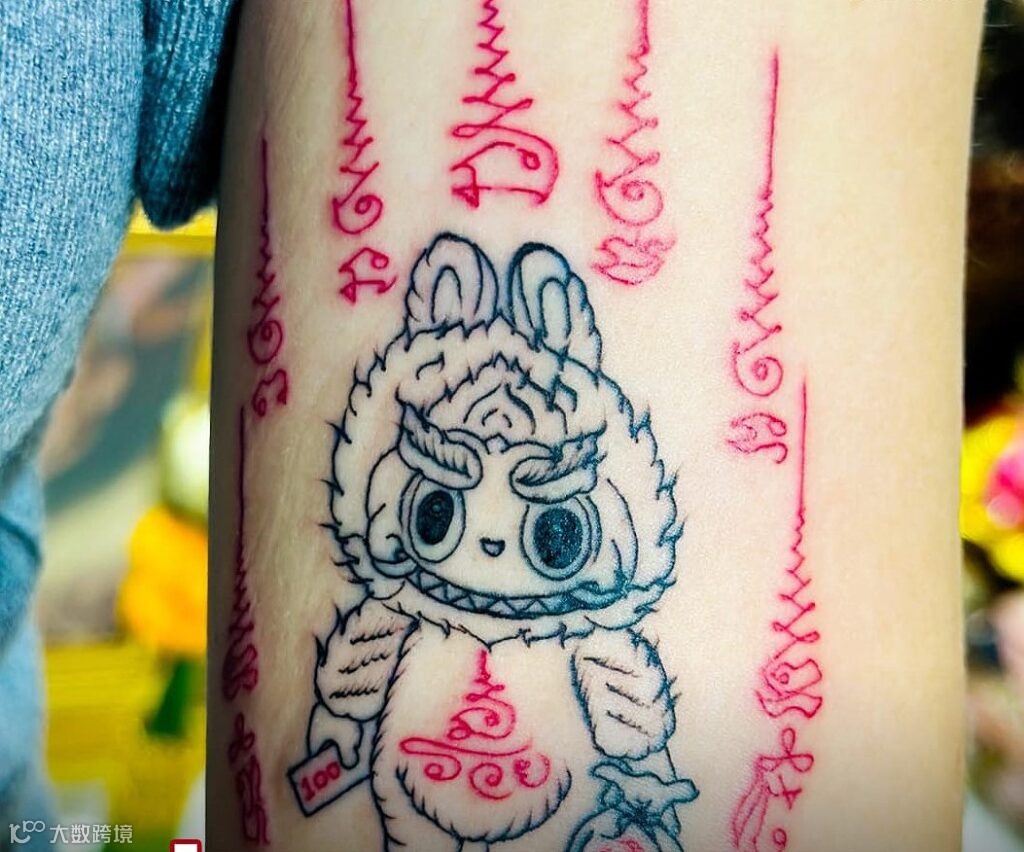 泰国人不仅把Labubu挂在包上,还把它纹在身上,实现真正的随身携带。