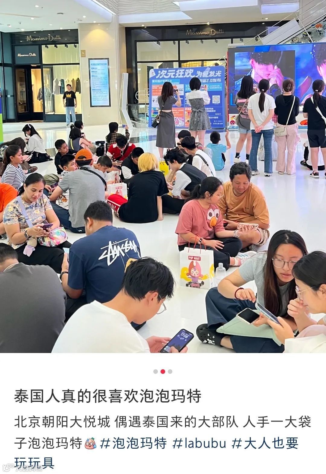 “北京朝阳大悦城,偶遇泰国来的大部队,人手一大袋子泡泡玛特。”