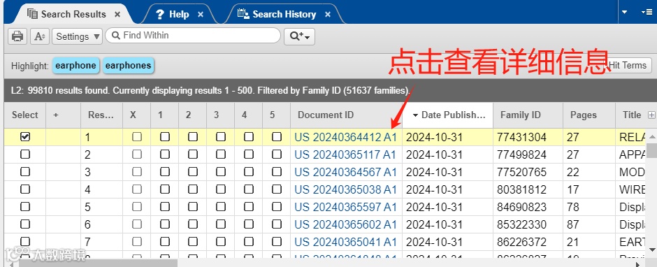 4. 点击专利号可查询详细信息