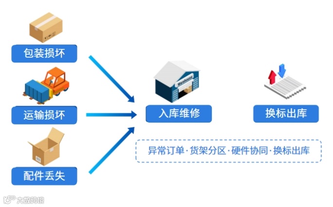 系统支持PDA拍照,在线查询商品状态。同时,针对提高退货换标和维修功能的海外仓,系统可以导入相关订单,设置维修物料预警,提交检修数据,帮助仓库区分良品、不良品,分别入库上架。