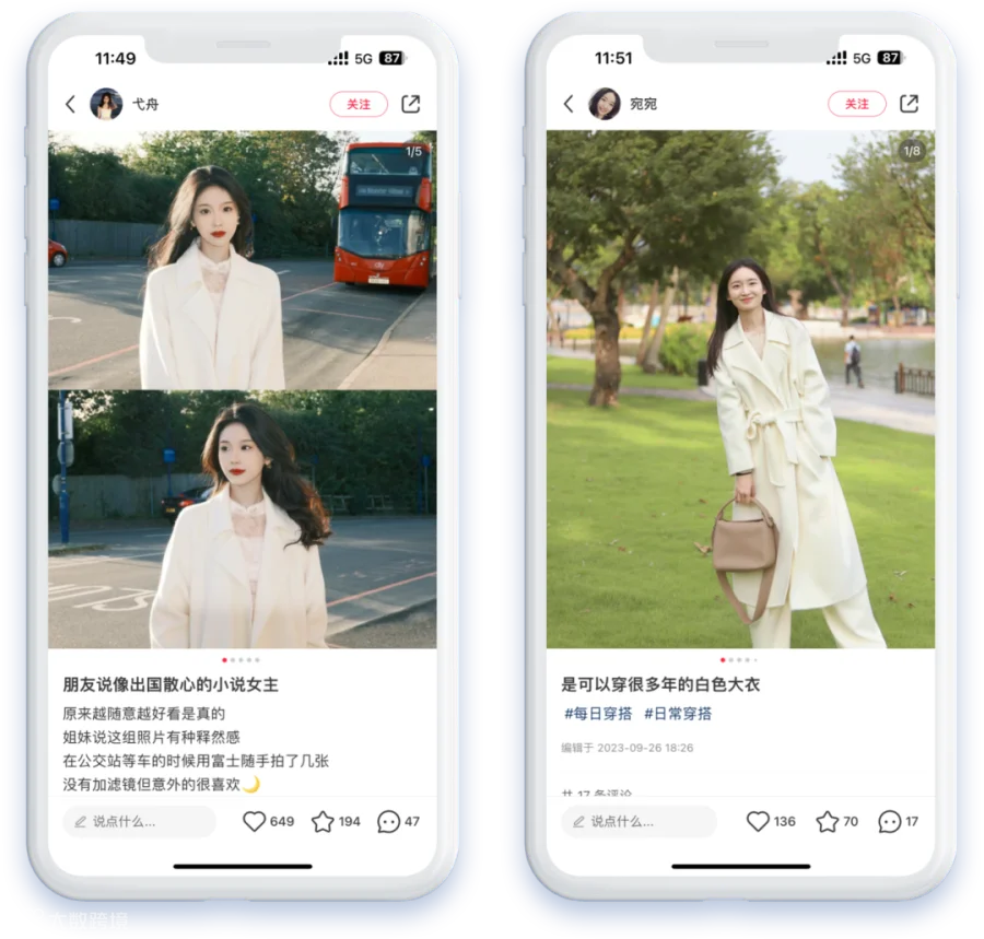 ▲ KOL笔记种草-伊芙丽“白月光大衣”