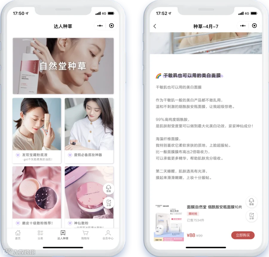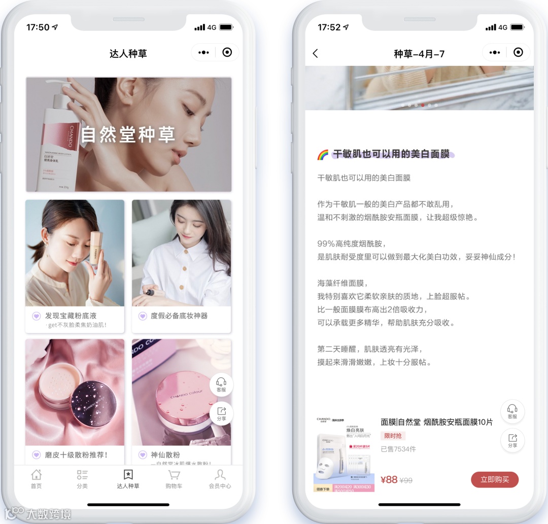 ▲ 「自然堂会员商城」“达人种草”栏目