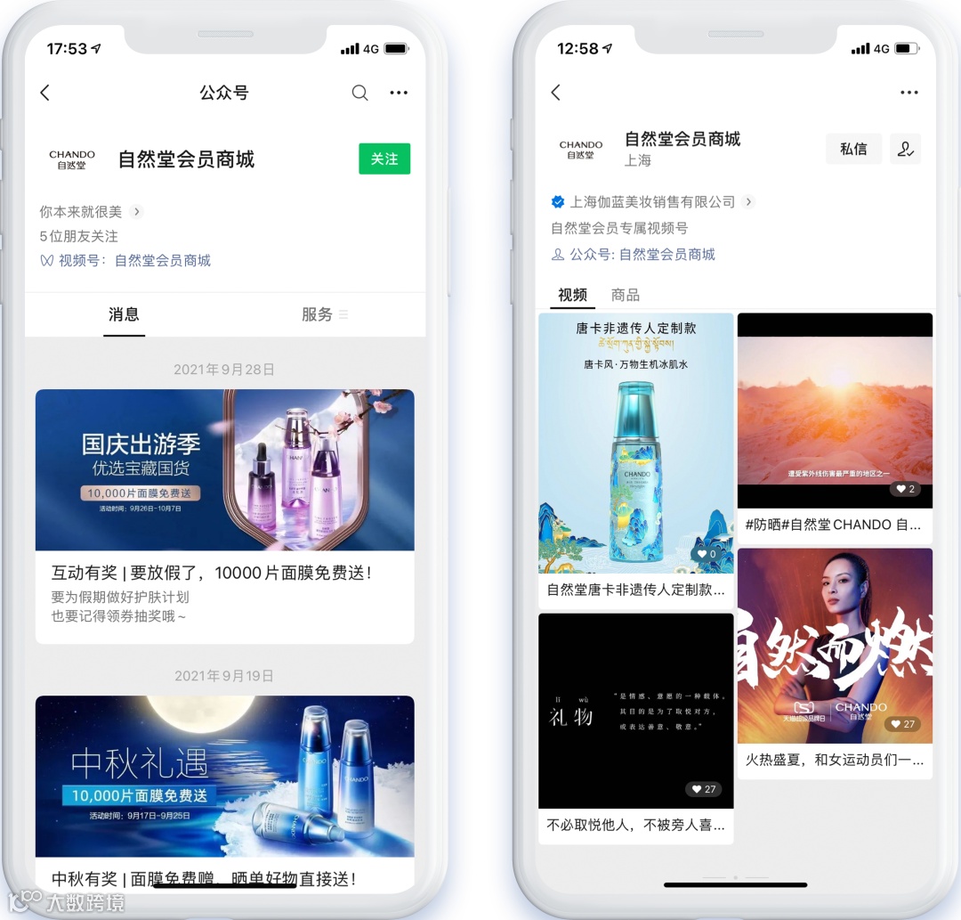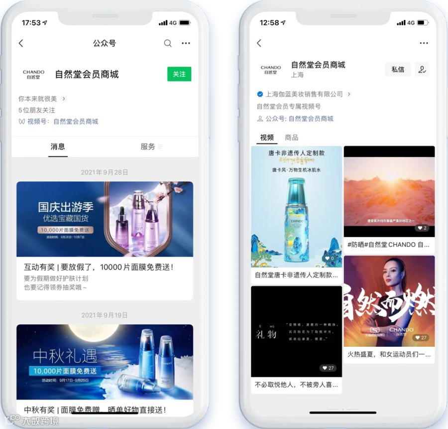 ▲ 「自然堂」公众号与视频号丰富内容营销