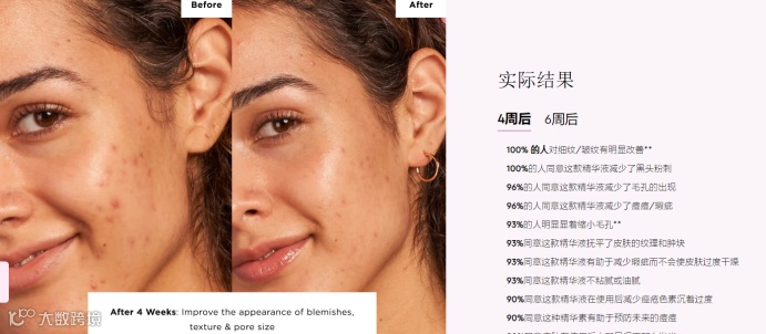 在上市后,Glow Recipe会收集消费者使用4—6周的皮肤改善状况,并会在产品介绍中放置使用产品前后的对比图,以便于对产品感兴趣的潜在客户做参考。