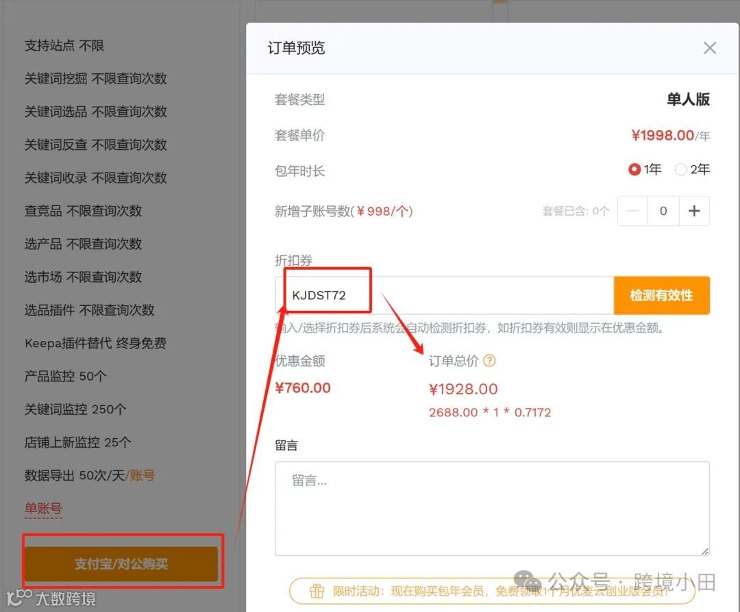 会员折扣码使用方法:在订单预览页面,折扣券里填入我们的专属折扣码(KJDST72 或 KJDST78),然后支付即可。