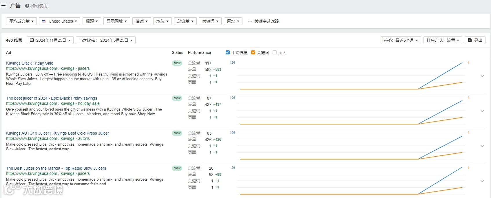 付费广告:根据ahrefs数据显示,Kuvings所有的广告文案,都围绕着“健康生活”这一主题展开,将健康生活方式与产品特点紧密结合,赋予产品更高的情感和功能价值,这是能够吸引关注健康生活方式消费者的注意的。