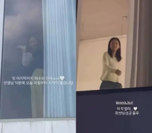 지난 1일 공유된 영상 속에는 이효리가 창문 밖에서 자신을 찍는 이용자들에게 환히 웃으며 손을 흔들고 있는 모습. 이용자는 "힛, 마지막까지 따수운 인사ㅠㅠ 선생님 덕분에 오늘 아침부터 시작이 좋습니다"라고 적었다.