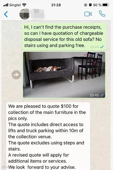 比如一个小型沙发的回收费用约为100新元,若搬运需上楼,还将加收额外费用。对此,网友们纷纷出招应对。