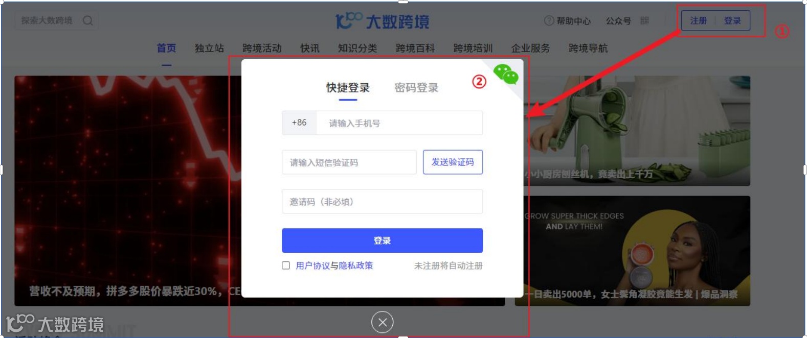浏览器进入大数跨境官网 www.10100.com,点击右上角【登录】