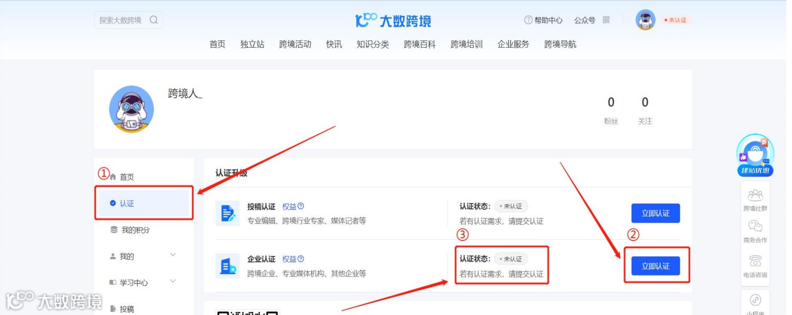 【认证】-【立即认证】