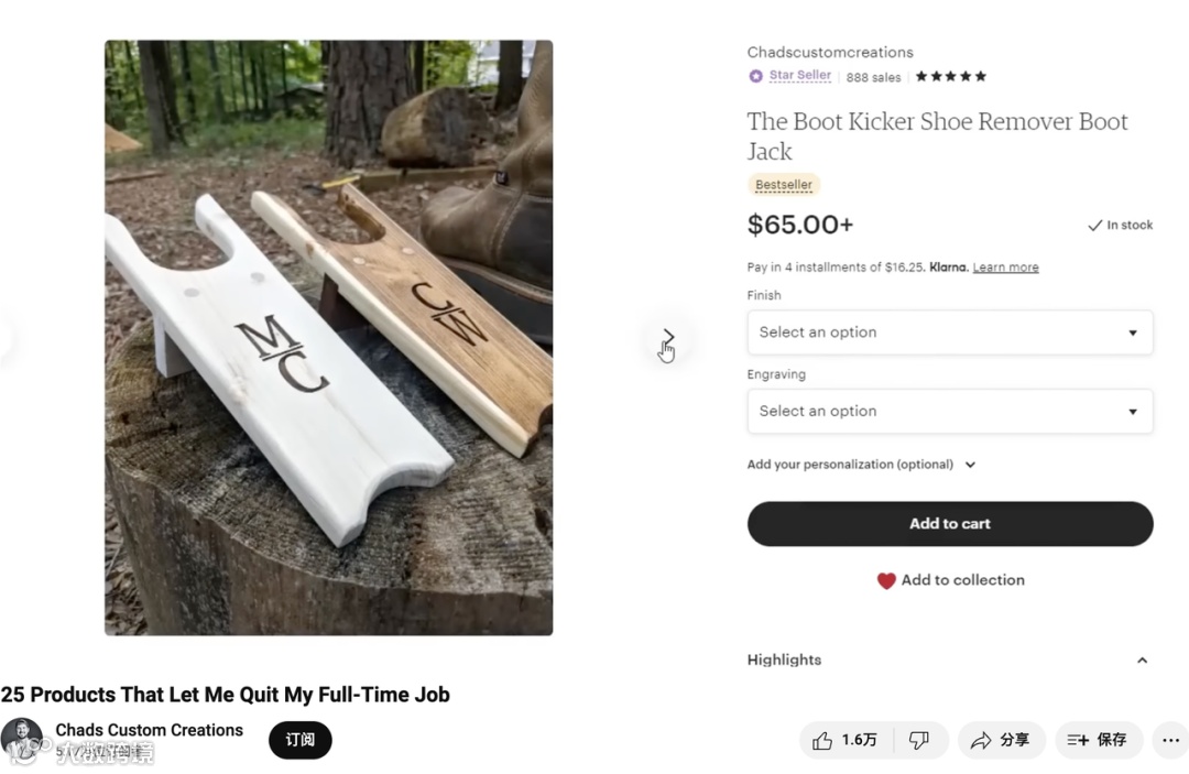 在具体的合作内容中,频道主持人用了一个非常“标题党”的手法吸引了大量点击——“25 Products That Let Me Quit My Full-Time Job(这25个作品让我辞职单干了)”。