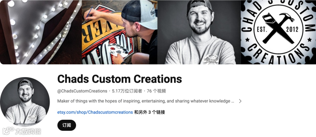 Chads Custom Creations,一个专注手工、木艺制品的频道,主要内容都是由过程记录、教学演示为主,目前拥有5.17万名订阅,属于手工、DIY这个垂直领域的头部红人了。