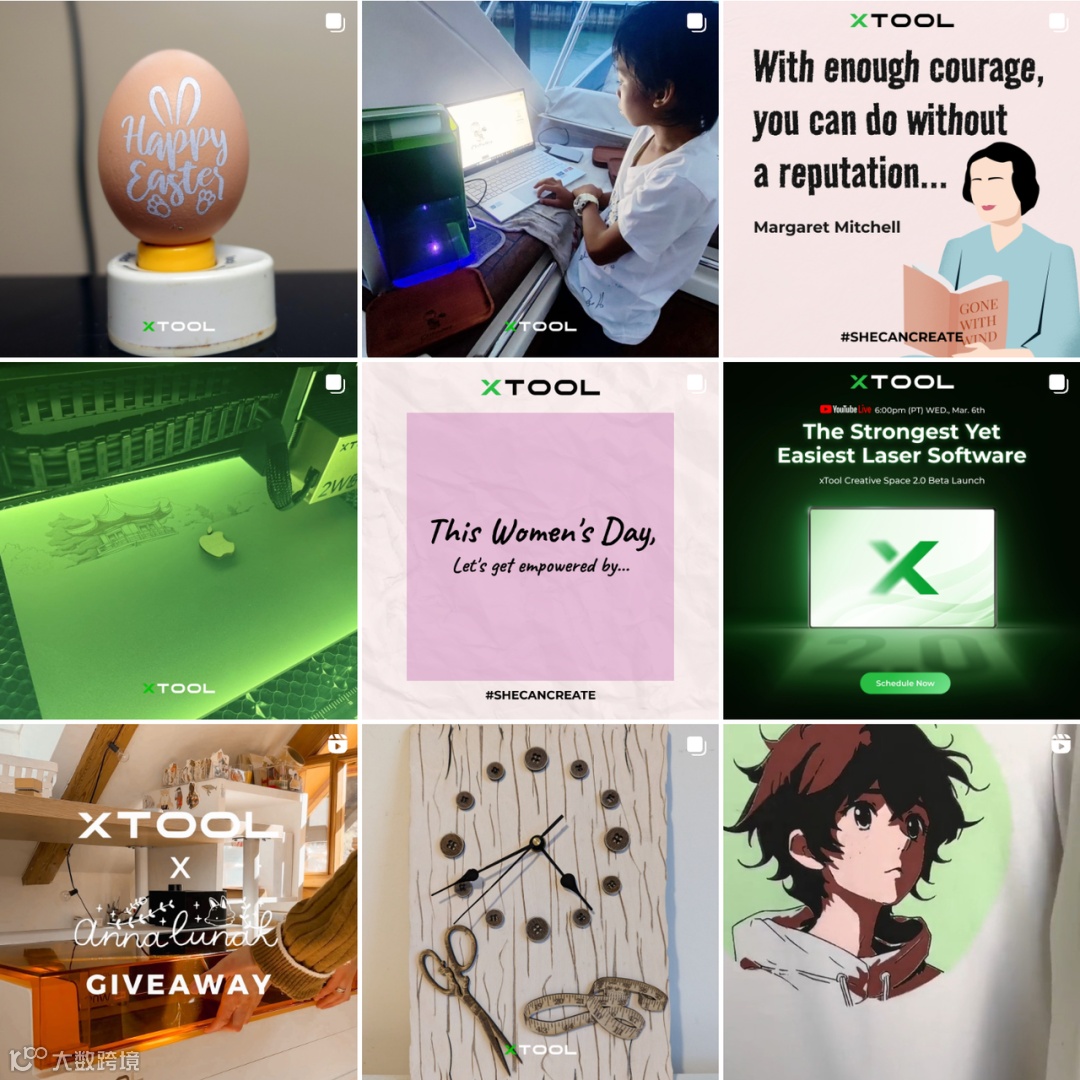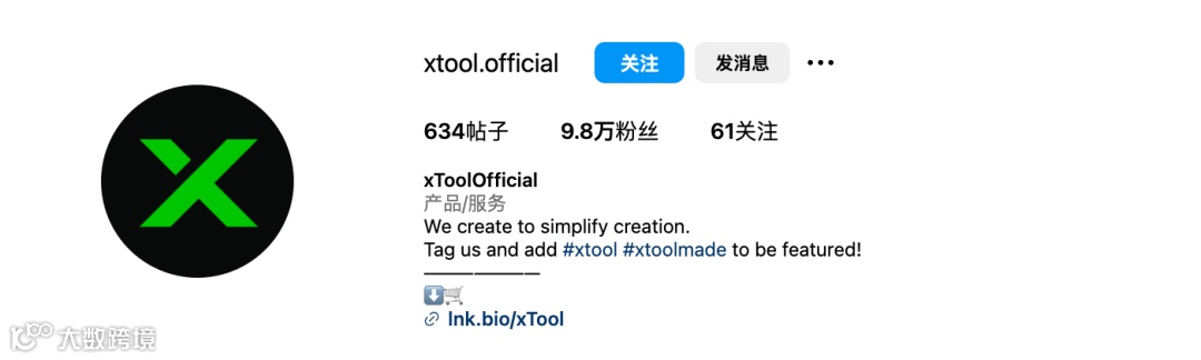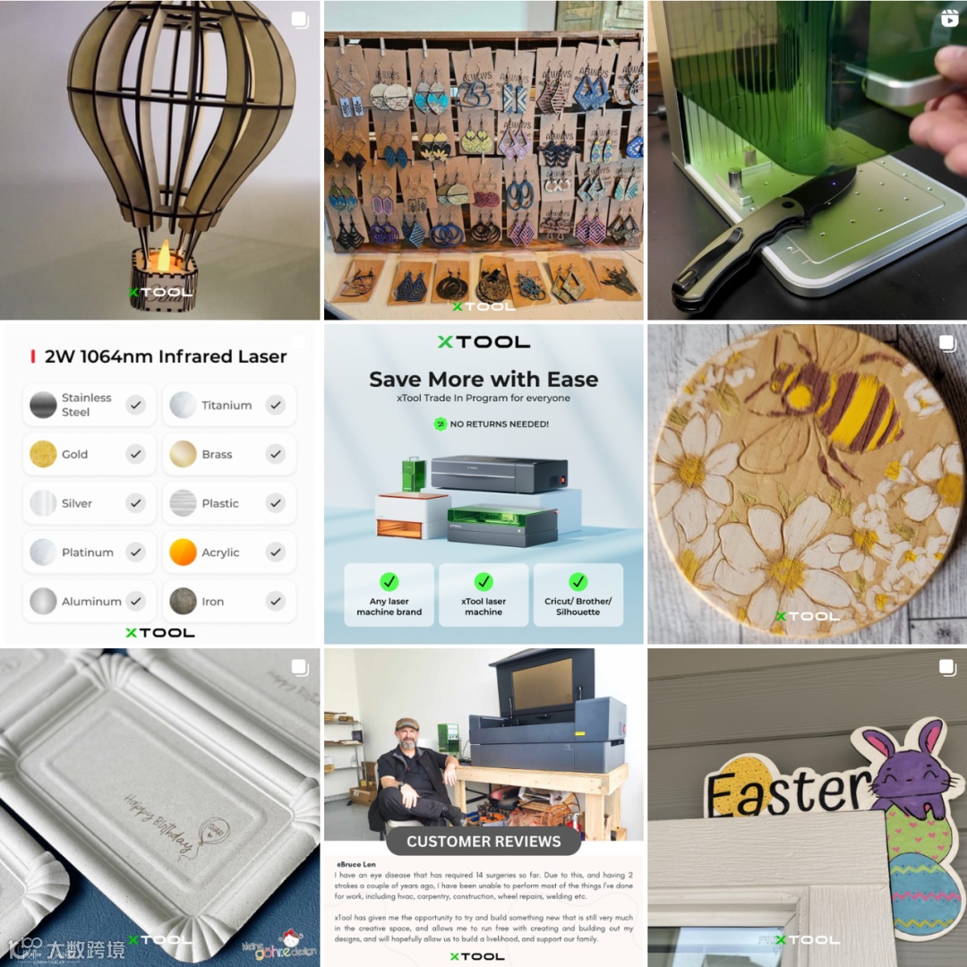 而这也是为什么xTool选择在社媒上发力营销的原因。因为手工、教育相关的内容天然具备吸睛属性。xTool的官方Instagram账号目前拥有9.8万名粉丝,对一个冷门赛道的品牌来说这个数据相当不错。这主要得益于品牌的内容运营策略和红人营销方案。
