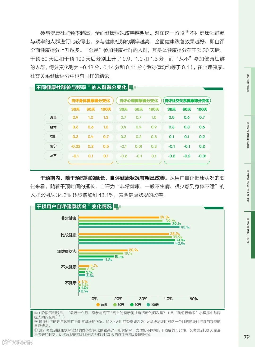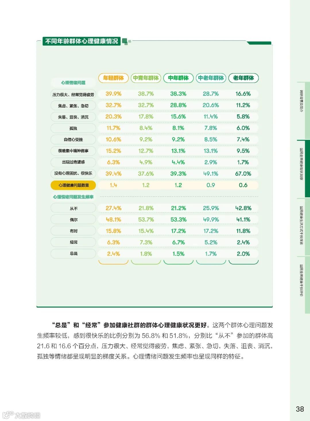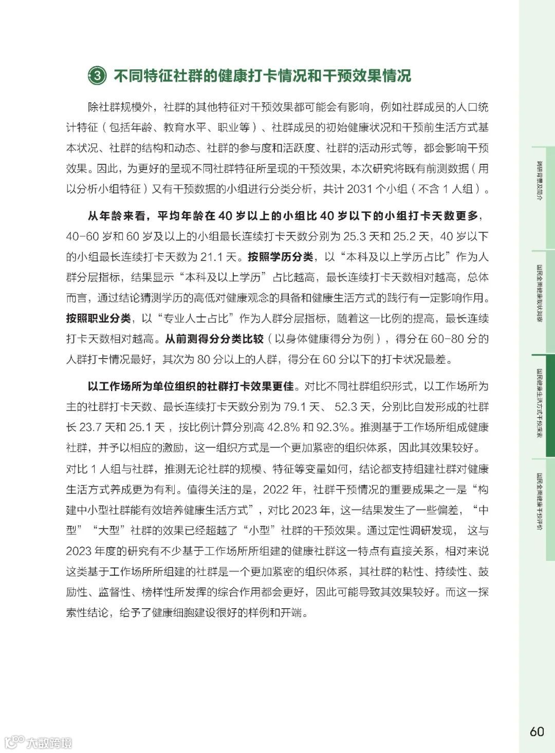 健康社群作为社会支持体系的核心,其在健康干预中的作用越来悦重要。研究发现,参与健康社群的频率与全面健康得分呈正相关。高频参与社群的群体在身体健康、心理健康、社交关系健康方面的得分均有显著提升。