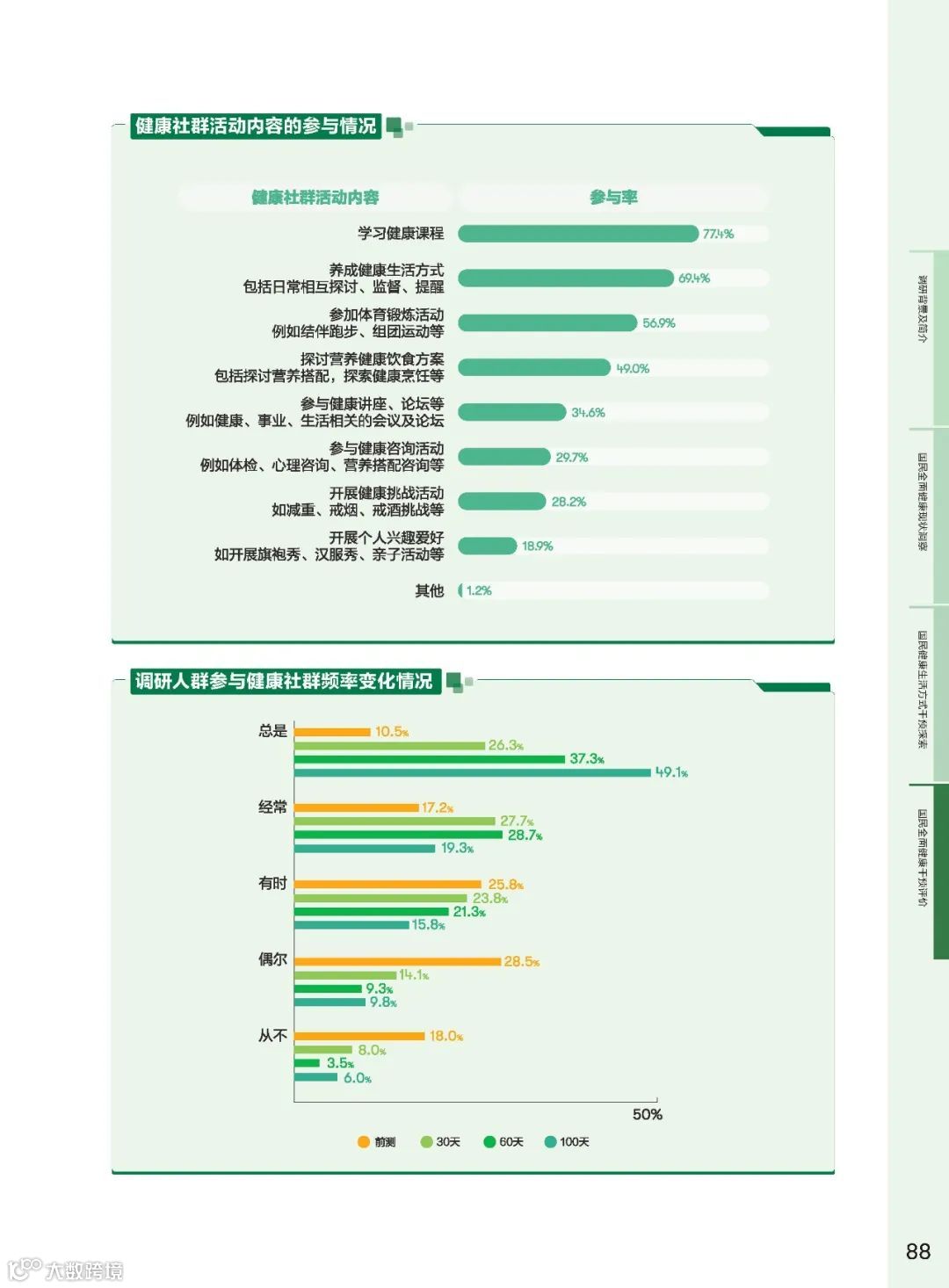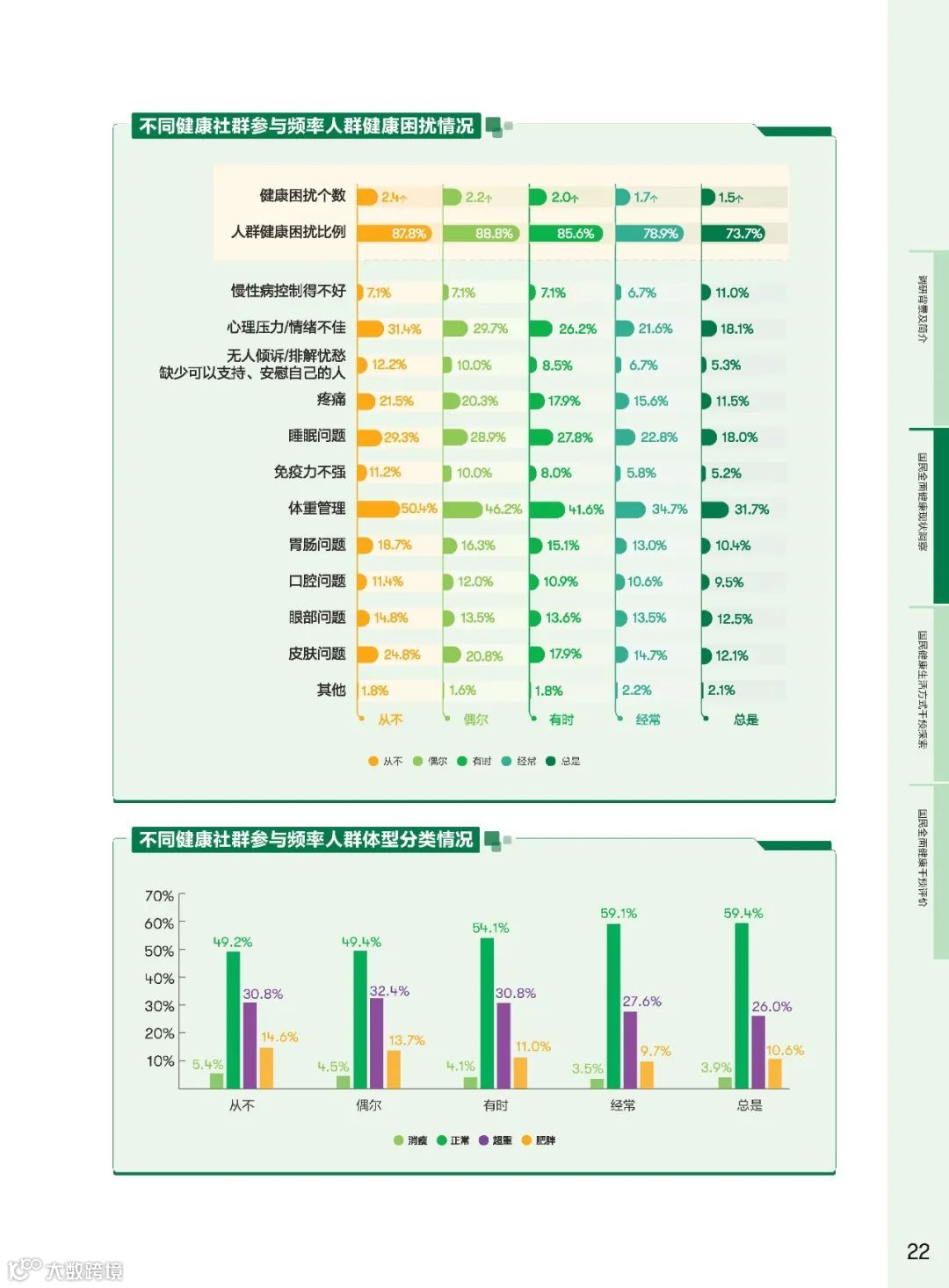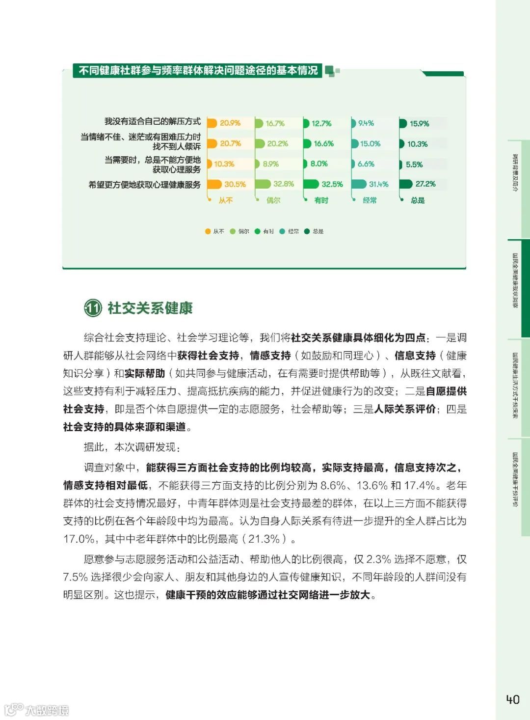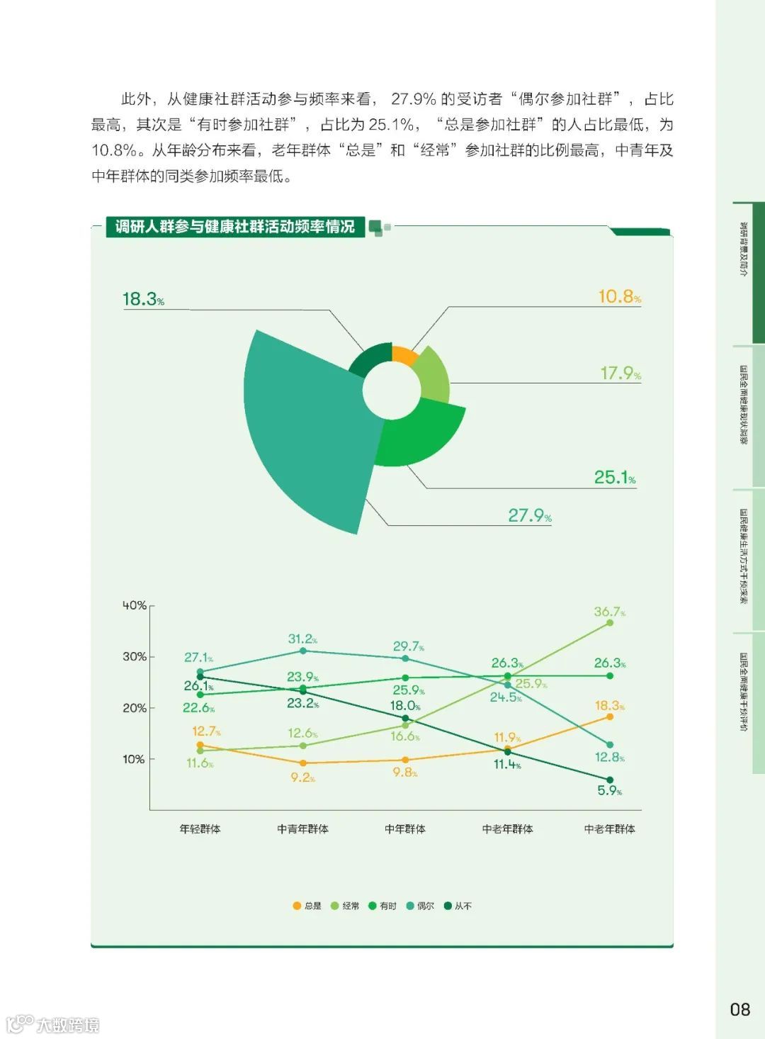 健康社群作为社会支持体系的核心,其在健康干预中的作用越来悦重要。研究发现,参与健康社群的频率与全面健康得分呈正相关。高频参与社群的群体在身体健康、心理健康、社交关系健康方面的得分均有显著提升。