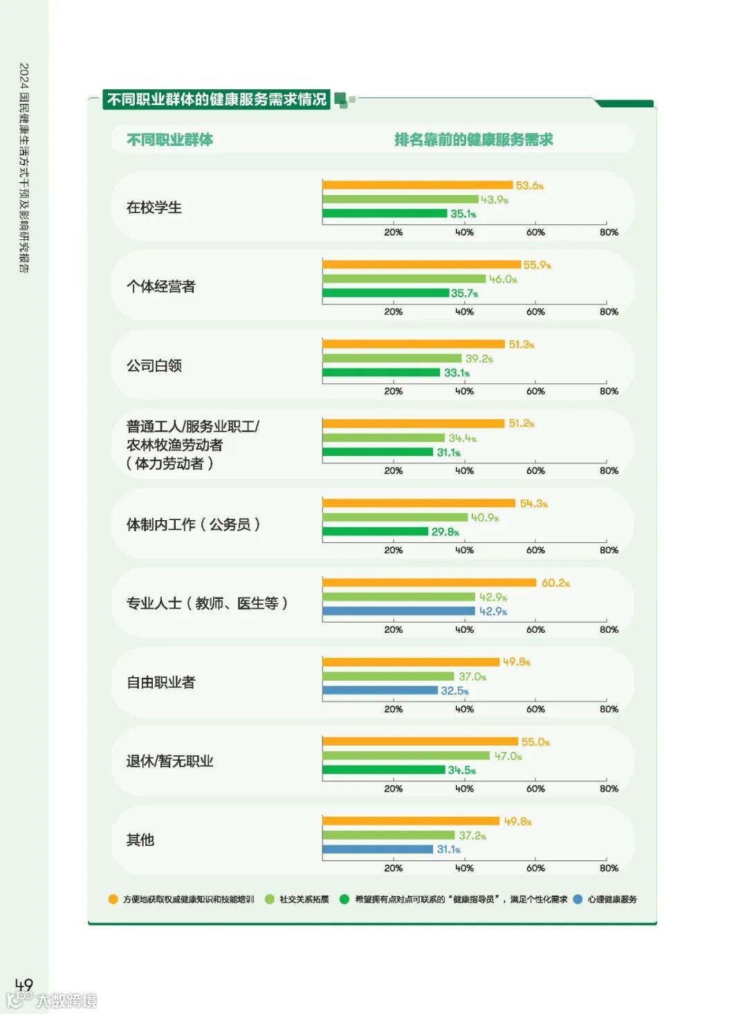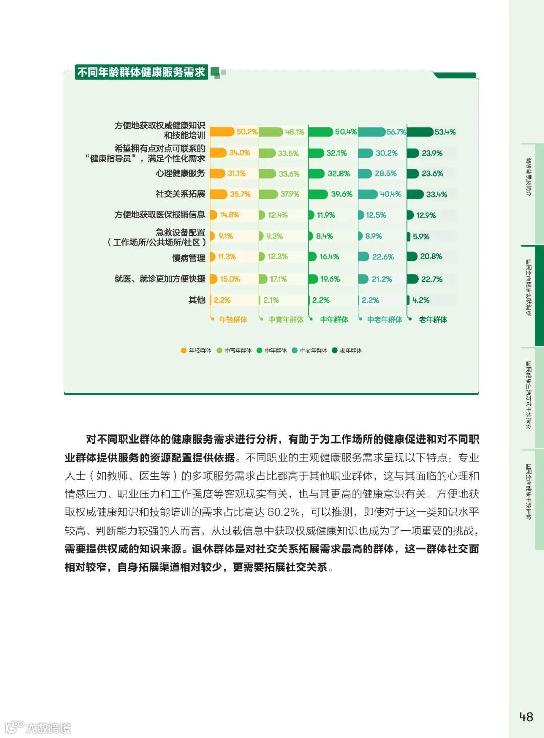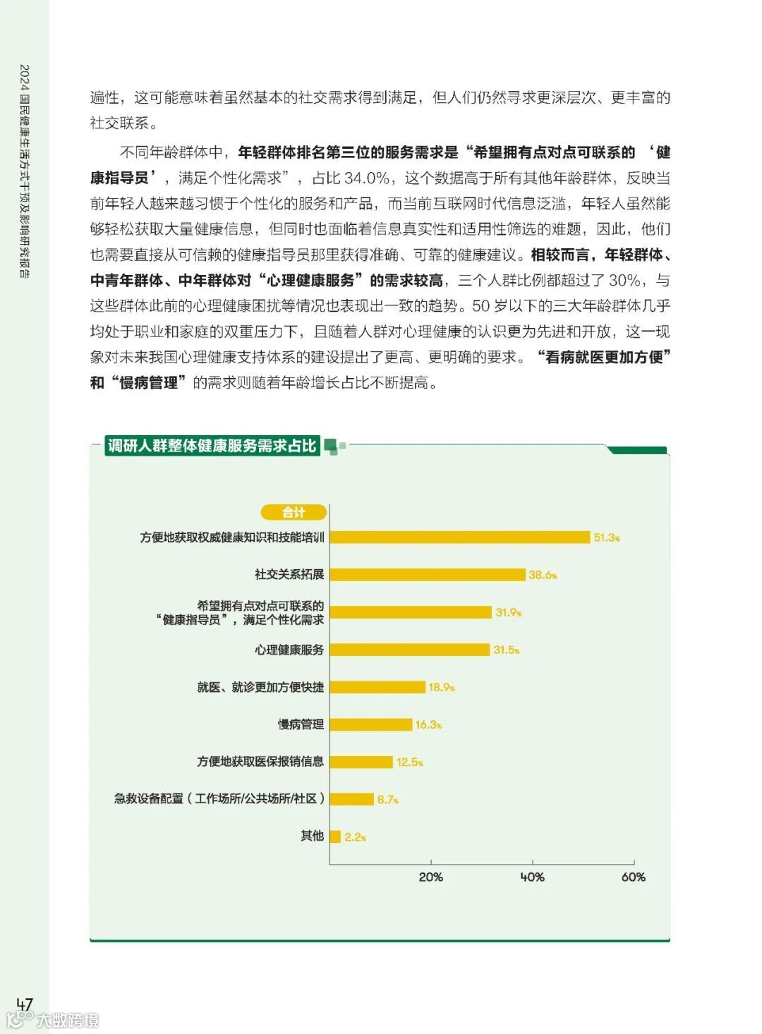 调研显示,权威健康知识获取、社交关系拓展、心理健康服务需求较高。国民对健康服务的多样化需求,也为健康服务提供了新的发展方向。