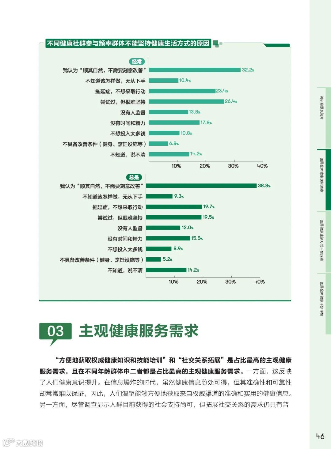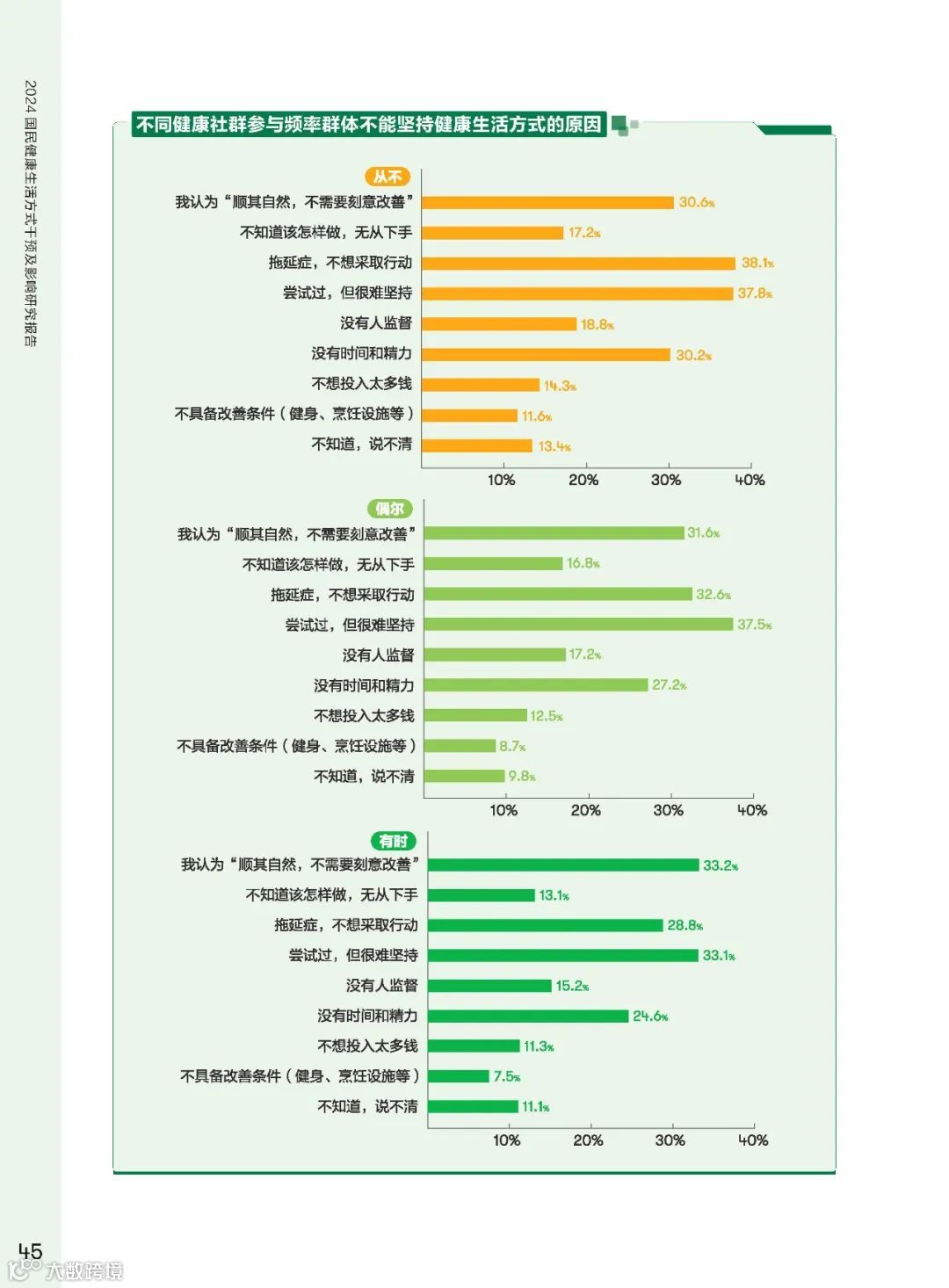 健康意识薄弱和“难坚持”问题成为阻碍健康生活方式最重要的因素。改善健康观念,提升对健康生活方式重要性的认知,是改善健康生活方式的重要途径。