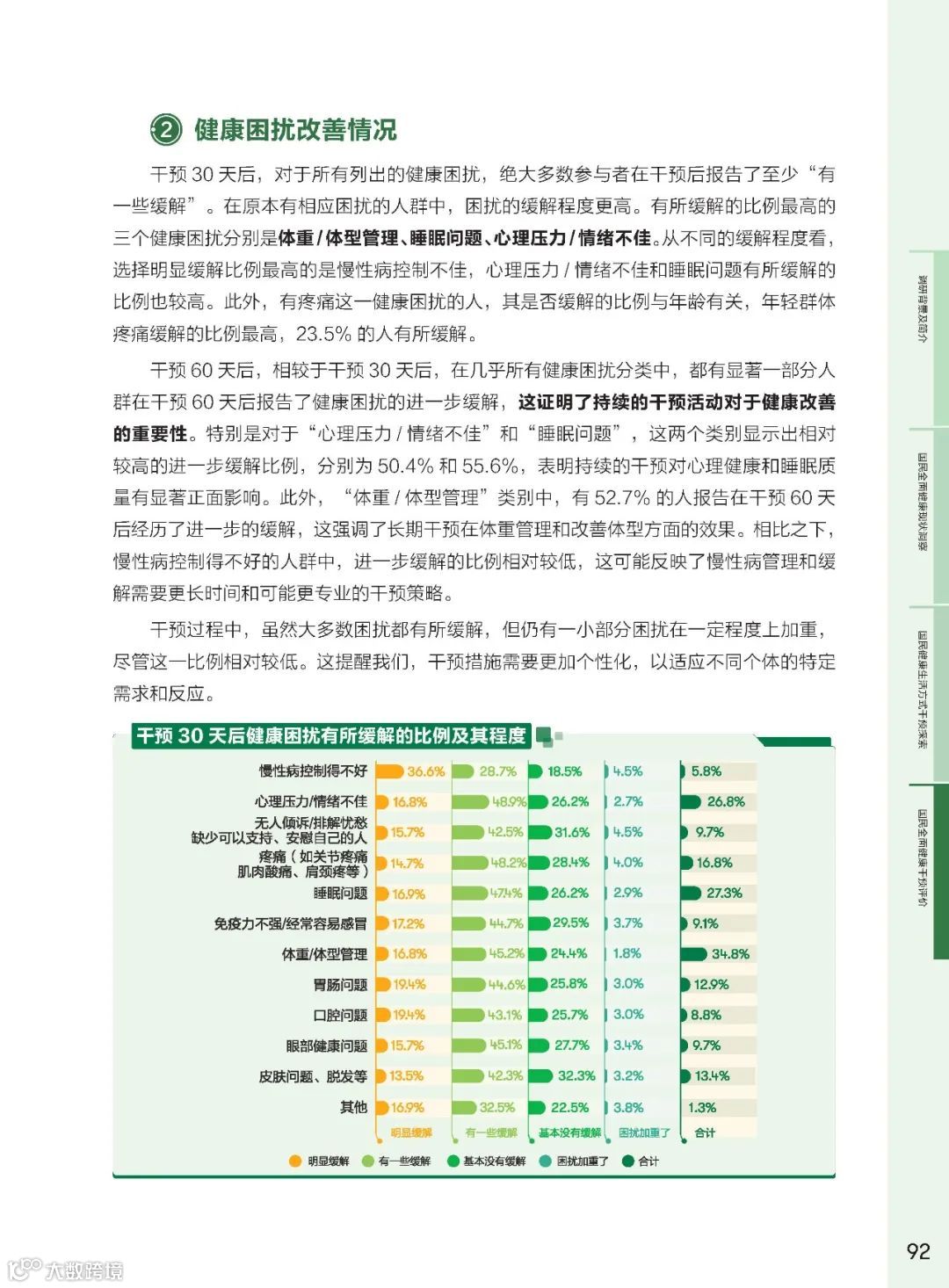 体重和体型管理困扰高居榜首。干预后,超九成人认为心理压力、无人倾诉、胃肠问题有所缓解,体重和体型管理困扰的缓解比例最低,但仍有显著成效。