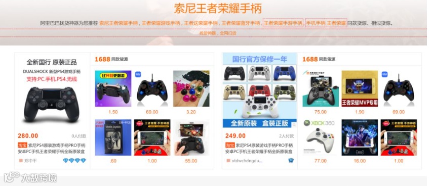 上图是 “索尼王者荣耀手柄” 的一个 TAG 型页面。主要区域是产品列表,是调用搜索接口;头部是一段简单描述,并加入了内链。另外,TAG 型网页在网页筛选、模板设置、内链部分有很多细节需要注意,有机会再讲。