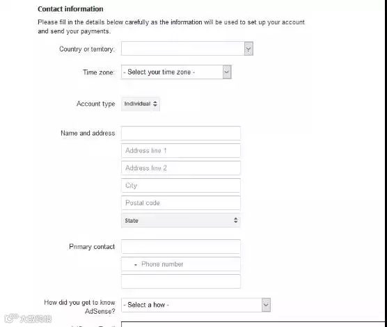 如实填写Google Adsense注册表单