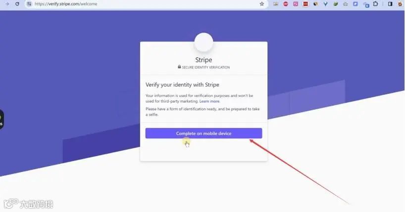 点击“在⼿机端完成验证(complete on Mobile device)”