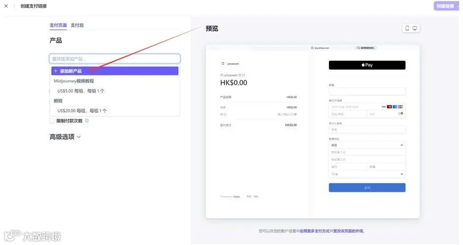 点击“添加新产品”, 然后设置名称、价格等(可以设置多币种,美元,港元都⾏。我设置的是美元)。