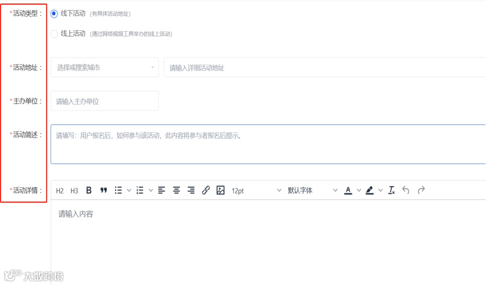 “活动地址”是以城市开头,因此在“详细活动地址”处不再赘述省份及城市,只填具体的地址信息(为了页面更为美观简洁)