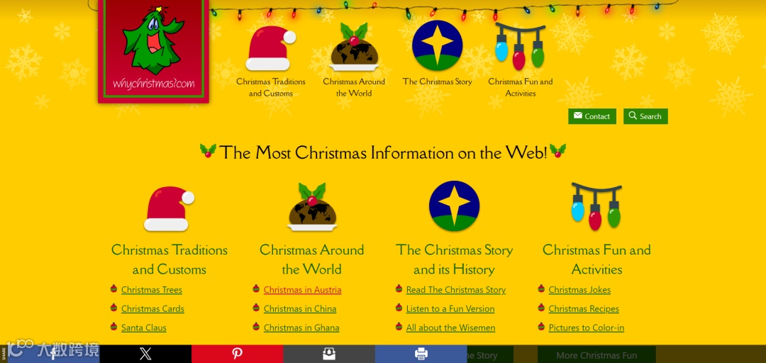 打开网址:https://www.whychristmas.com/,根据各个国家进行以下类目查询了解。(界面如下图,非常简洁实用)