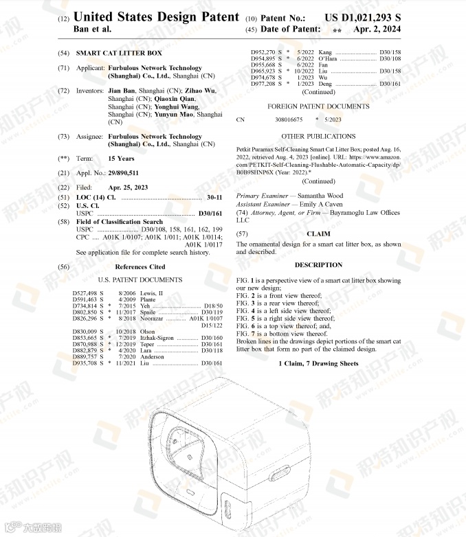 智能猫砂盆有多好卖,卖家对它的专利布局就有多狂热,光是今年就有大批美国外观专利下证,想要进入“赛道”的卖家务必要小心: