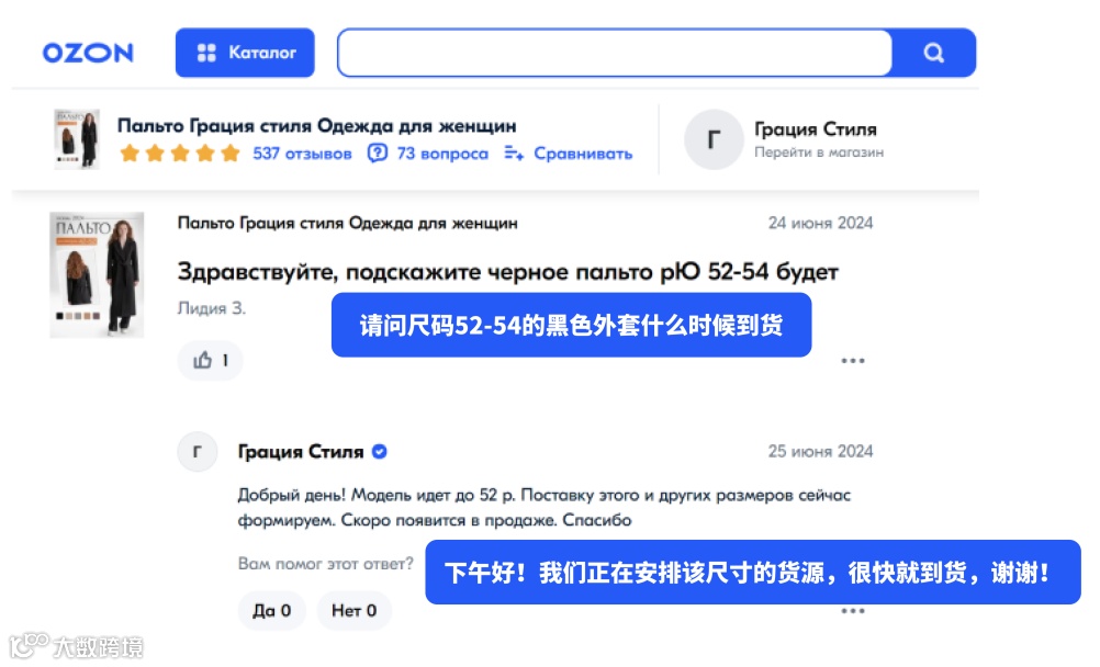 ● Ozon通常将问答的数量和质量作为排名因素。通过及时且有用地回答问题,可以提升你的评分并增加商品的曝光率。