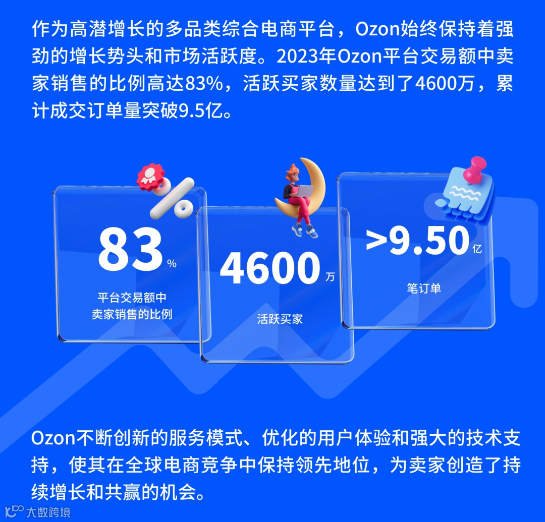 在Ozon上销售自己的商品并打开数百万计俄罗斯客户市场的大门吧! Ozon是俄罗斯领先的综合类目电商平台之一