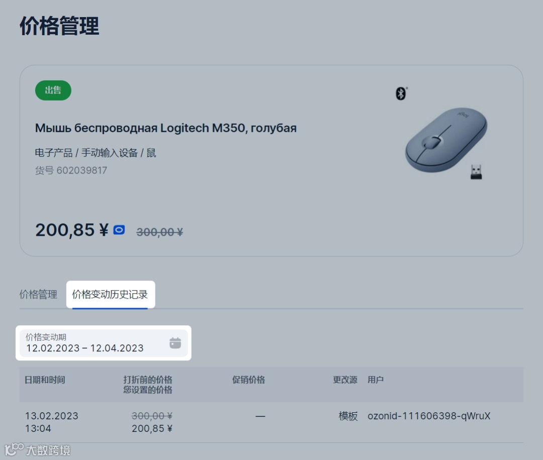 5)价格变动历史记录