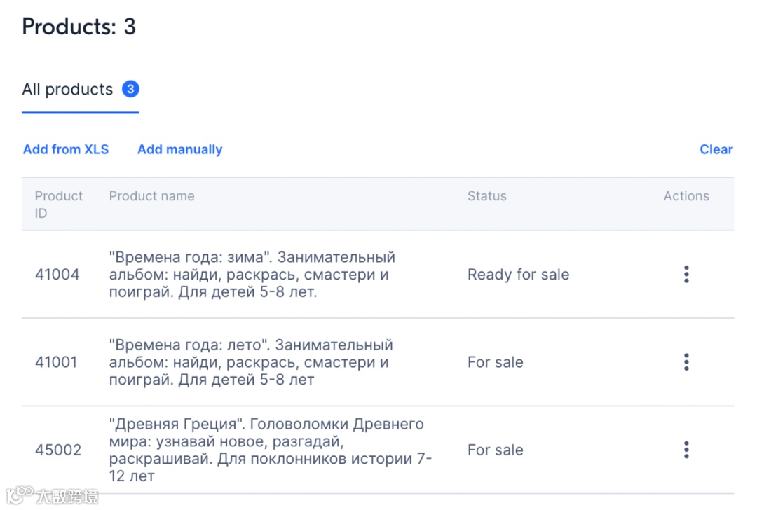 4. 在商品区域中请选择与该文件相关的产品。可以手动添加产品或将产品加载到XLS文件中。在后者情况下,请标明产品跟个人中心内相同的编号。