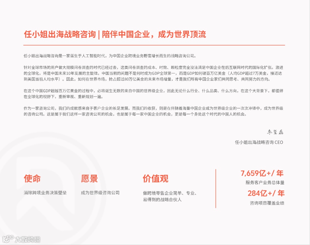 截止2024年,我们已服务了众多跨境企业,我们期望能与那些有志于成为行业领军者跨境企业携手合作,共同跻身全球顶尖行列。