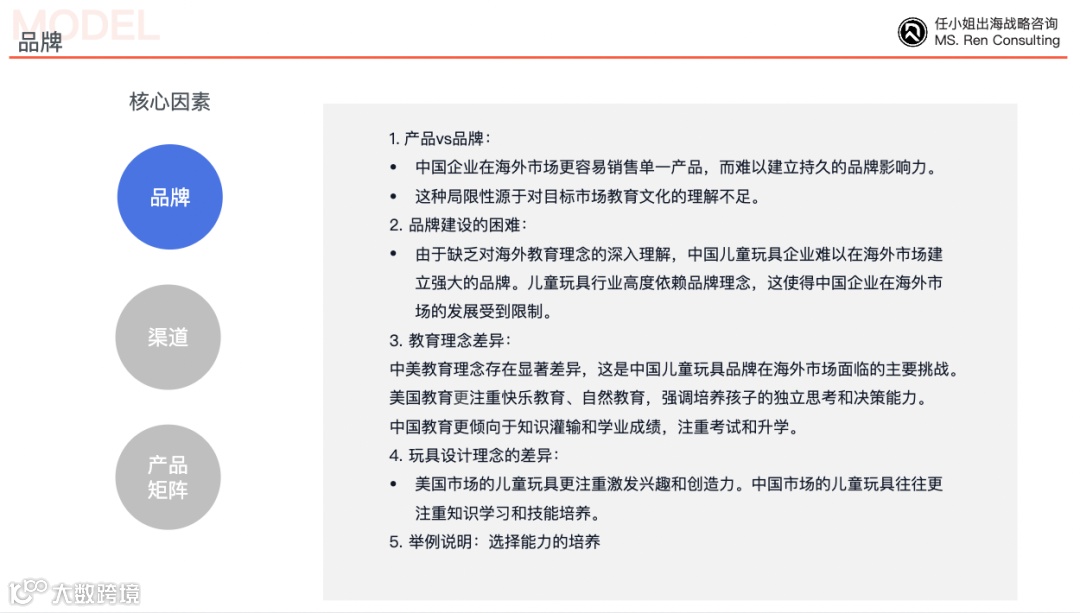 儿童玩具的品牌打造其实是我们中国企业的较弱的地方,为什么呢?儿童玩具出海背后其实是教育理念出海,但中美教育理念存在显著差异。