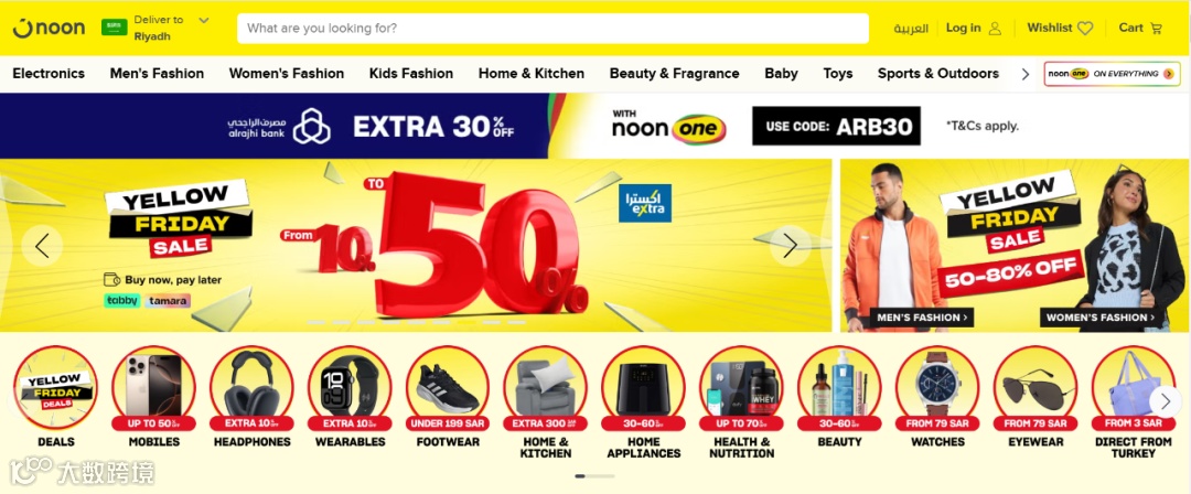 平台规模:Noon是中东最大的本土电商平台,覆盖了阿联酋、沙特阿拉伯和埃及等多个中东国家,拥有庞大的用户群体和丰富的商品种类。