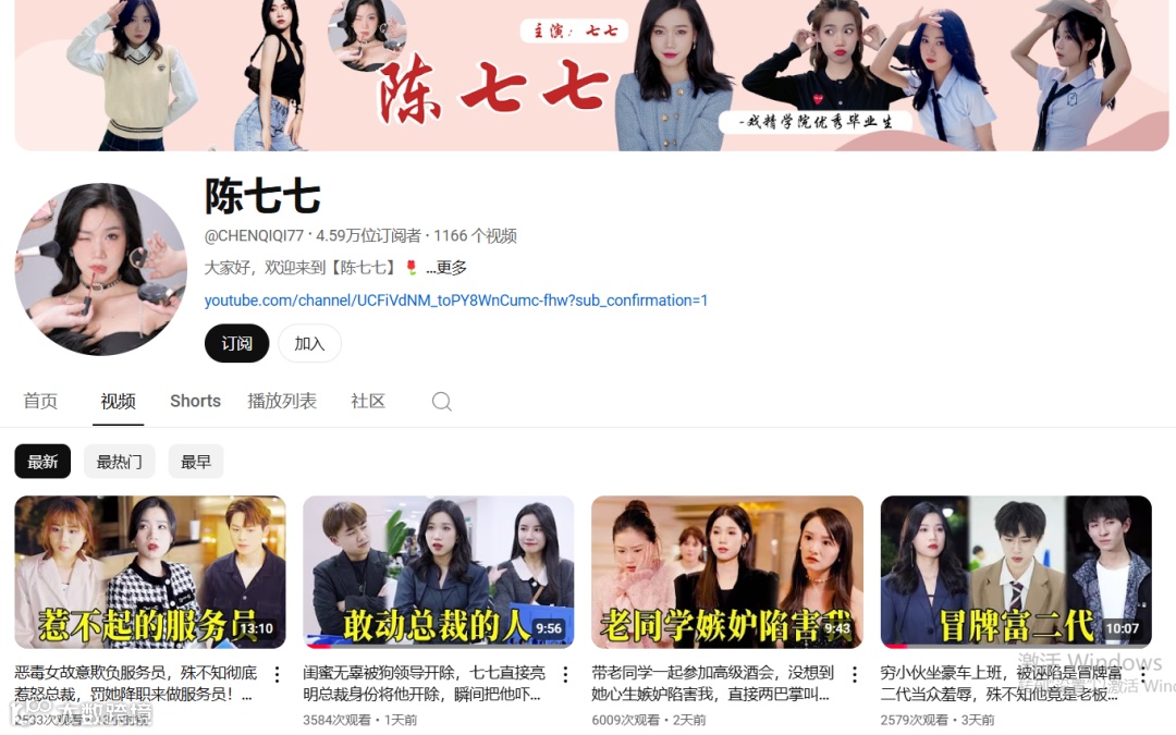 比如麦芽旗下的千万粉达人“陈七七”,其在YouTube账号上分发国内剧情视频,部分视频片头有贴片广告,能够为账号创造收益。