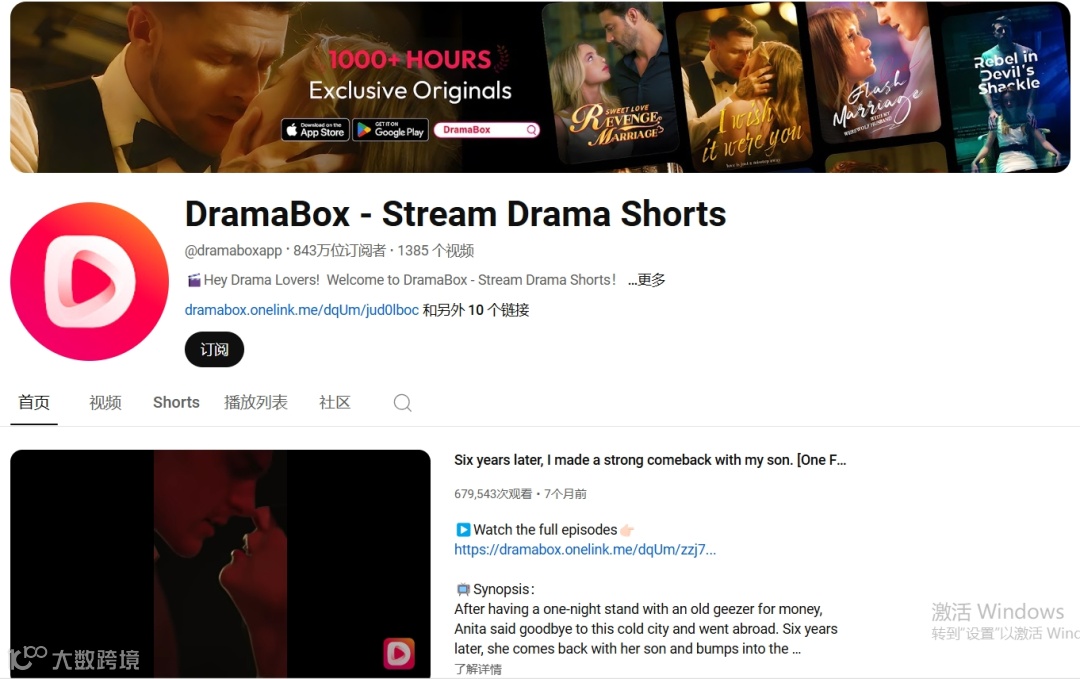 就拿DramaBox来说,主页banner图片可以引导下载APP,首页的短剧内容观看量接近68万次,点击查看全集即跳转AppStore的下载页面,横屏的“视频”板块和竖屏的“Shorts”可以自由适配多端观看,类似微博动态的“社区”模块能够高效发布短消息,和粉丝互动,提升粉丝粘性。