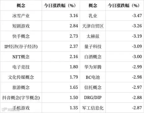 (今日涨跌幅居前的概念板块)
