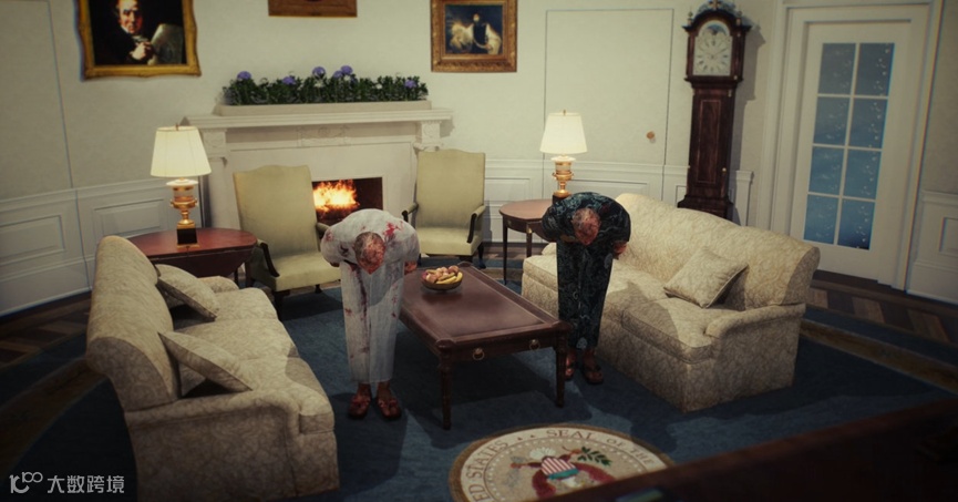 就在11月1日,铃空游戏突然放出第二支预告片,再次引爆了玩家们讨论的热潮,目前的播放量已超过490万。同样是以在类似白宫的建筑中身穿和服的丧尸鞠躬为开篇,第二条PV的节目效果、整活程度、热梗内容的密集度都要更上一个档次。