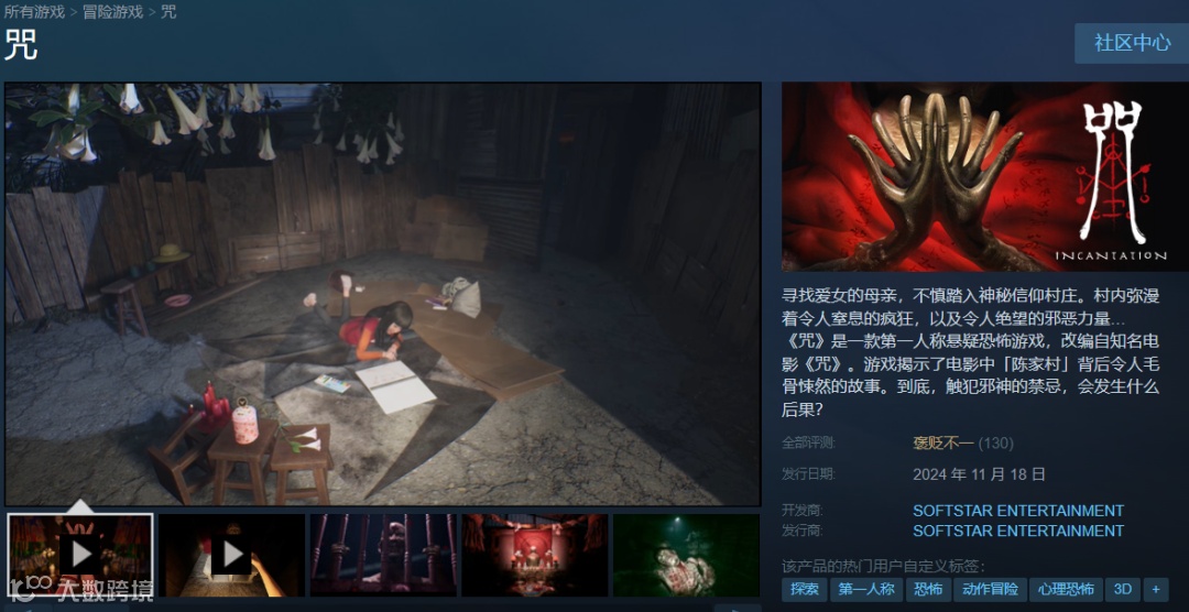 ▲大宇资讯在Steam上发售的恐怖游戏新作《咒》评价褒贬不一